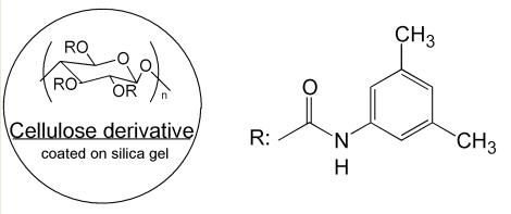 硅膠表面涂敷有纖維素-三(3,5-二甲基苯基氨基甲酸酯)