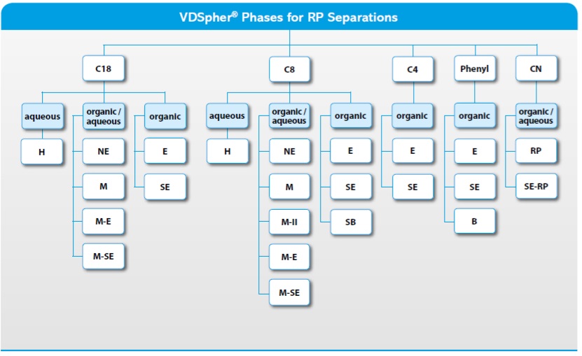 德國VDS Optilab色譜技術公司是具有31年開發和生產液相色譜柱經驗的企業,特別是運用反相液相色譜分離小分子化合物,產品品種和優化的選擇更全面。用于小分子化合物色譜分離的C18固定相種類有9種、C8固定相種類有9種,按照硅膠純度不同,區分VDSpher(經典)和VDSpher PUR(精睿)兩大系列,是同類產品線領域中最全供應商之一。