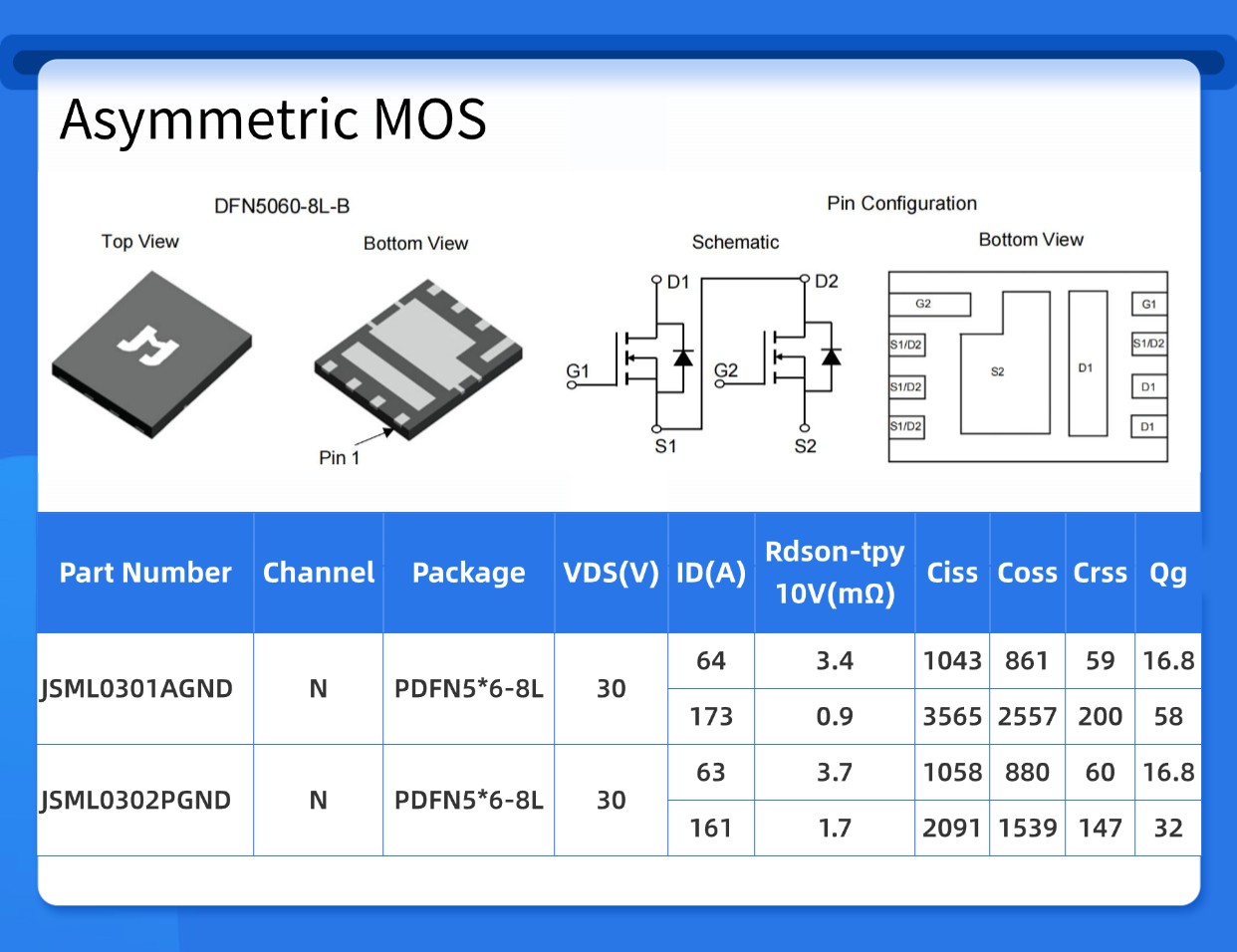 JSML0302PGND:在PDFN5×6封裝內實現(xiàn)0.9mΩ超低阻抗,電流能力達173A