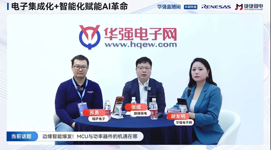 ? ? 捷捷微電 MOSFET市場(chǎng)部部長(zhǎng)?張成與瑞薩電子嵌入式處理器事業(yè)部高級(jí)專家?蘇勇一同做客華強(qiáng)電子網(wǎng),圍繞“電子集成化+智能化賦能AI革命”、“AI爆發(fā),功率器件如何突破現(xiàn)有技術(shù)?”等主題進(jìn)行了直播講解,在線觀眾熱情十足,討論激烈。
